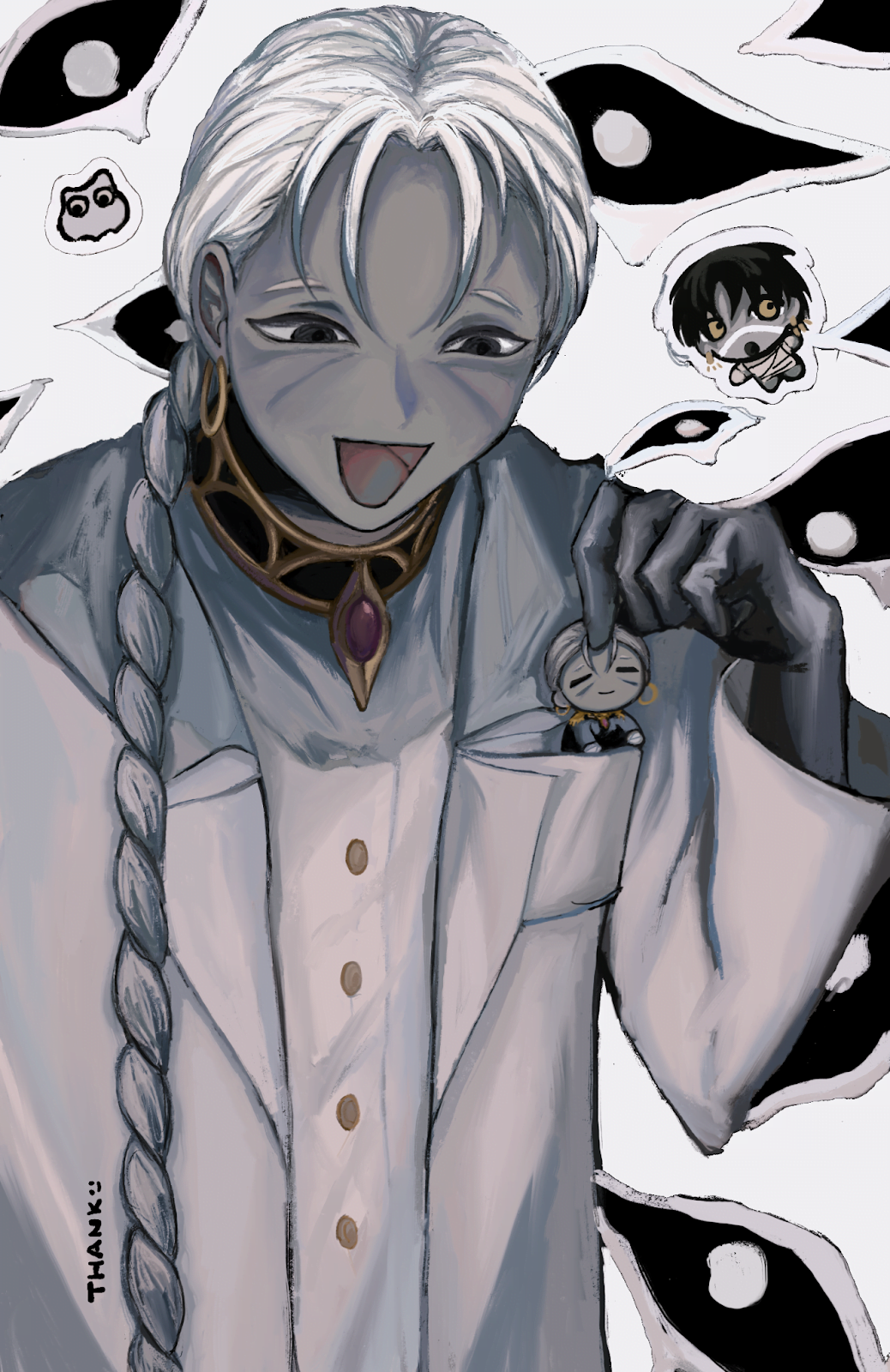 之前因為被藝術家埃伯(Eybler)的畫風深深吸引,所以邀約交換繪製作品中的雙子角色,寶藏之國的國王跟親王「索鈉利亞•弗傑特」,收到成品的時後,被雙子可愛的互動逗的看幾次笑幾次,旁邊還有被繃帶纏繞的可愛小哈迪,跟可愛的不知名生物,畫面非常治癒開心~