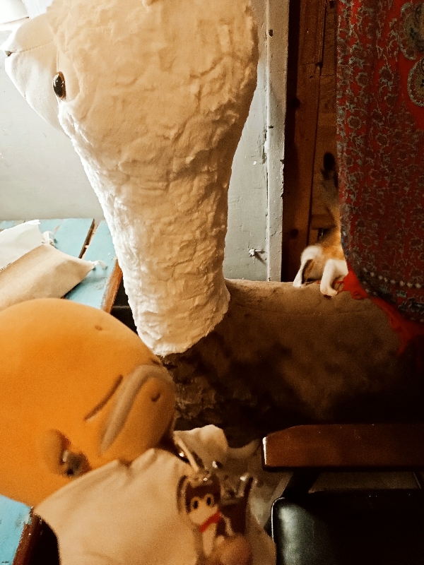 老婆是20cm的棉花娃娃~跟老婆合照當比例尺~以後可以把店貓小饅頭掛在包包上一起去旅行遛貓了~~