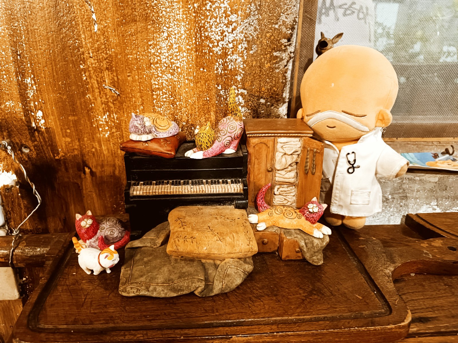 還有超可愛的貓咪場景擺件~放著老婆哈迪最愛的鋼琴~
